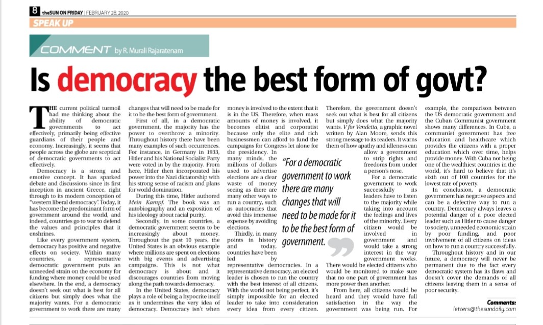 UncategorizedLocal Dailies Author: R Murali a/l Rajaratenam Share this: Share on X (Opens in new window) X Share on Facebook (Opens in new window) Facebook Like Loading... Related